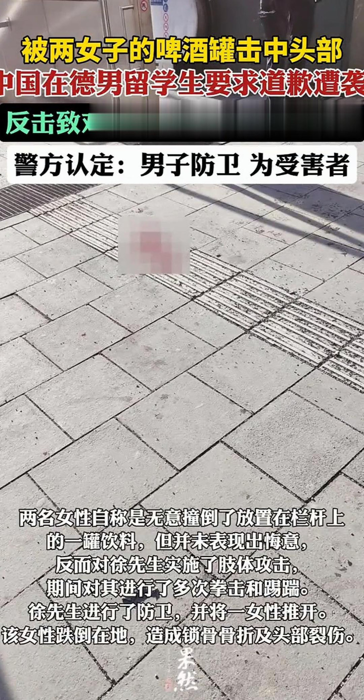 2026年新年第一天,德国慕尼黑中央火车站的地下通道里,一场突发冲突让中国博士生徐先生的跨年之旅戛然而止——被啤酒罐砸中头部、眼镜被打飞、遭两名女性围殴,危急时刻,常年健身的他奋起反击,致一名袭击者锁骨骨折,而德国警方最终认定其行为属于“防卫”,将其列为“受害者/被攻击者”。